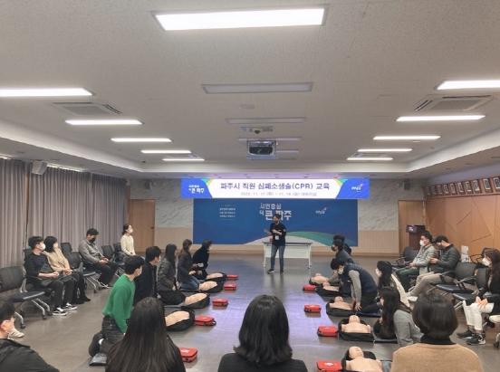 파주시는 위급상황 발생에 적극 대응할 수 있도록 직원 대상 심폐소생술과 AED(자동심장충격기) 사용법 교육을 시행했다.