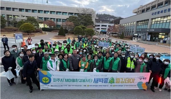 김경일 파주시장은 “파주시의 환경정화활동을 위해 조직된 ‘새벽종’ 새마을환경봉사단과 함께 ‘줍깅’을 실천하게 돼 굉장히 뜻깊다”며, “파주시 환경정화를 위해 애써주시는 새마을회원과 파주시민 여러분께 감사드리며, 쾌적한 파주시를 조성하기 위해 시에서도 적극 힘쓰겠다”고 밝혔다.