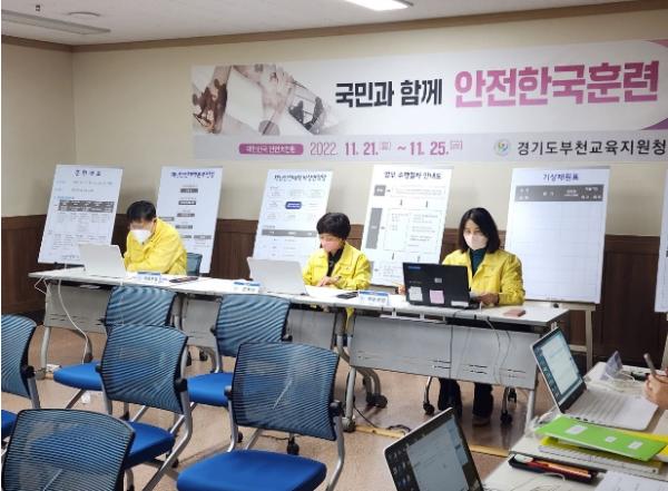 경기도부천교육지원청은 11월 21일 7시 불시 비상소집훈련을 시작으로 25일(금)까지 5일 동안 ‘2022 재난대응 안전한국훈련’을 실시한다고 밝혔다.