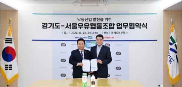 경기도와 서울우유협동조합은 23일 오후 경기도청 북부청사에서 ‘낙농산업 발전을 위한 경기도-서울우유협동조합 업무협약’을 체결, 젖소품종 다양화 등 다양한 분야에서의 협력을 추진하기로 했다.