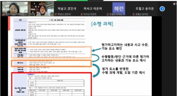 연수에 참여한 수학과 A교사는 “고교학점제를 대비한 최소성취수준진술문 작성과 평가문항 제작 실습으로 미도달예방지도 방법을 배울 수 있는 의미 있는 연수였다.”고 전했다.