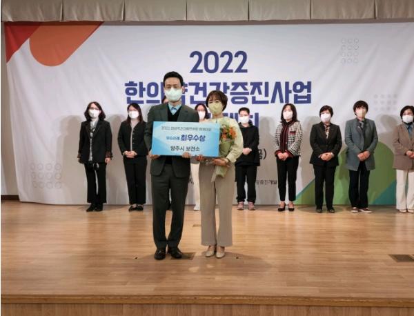 양주시는 지난 25일 용산구 국방컨벤션에서 열린‘2022년 한의약건강증진사업 성과대회’에서 지역사회 협력과 참여기반의 우수사례부문 전국 최우수 기관으로 선정되며 보건복지부장관 기관표창을 받았다.
