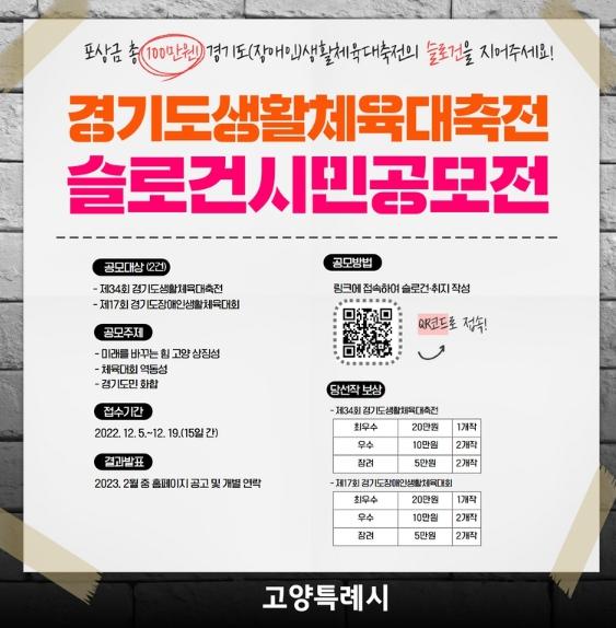 고양특례시가 2023년 9월 개최되는‘제34회 경기도생활체육대축전’과‘제17회 경기도장애인생활체육대회’의 슬로건을 공모한다.