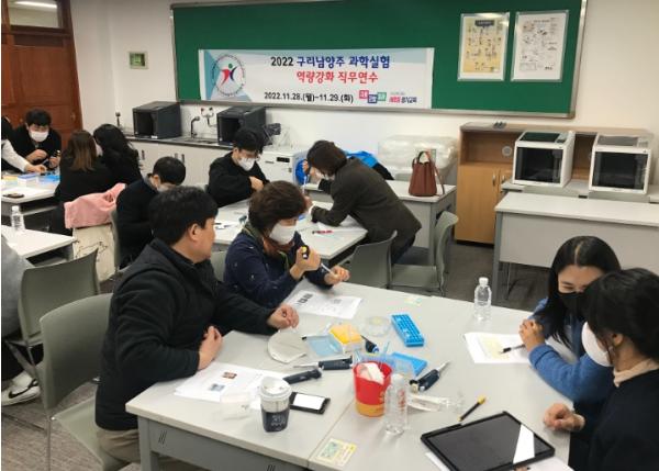 경기도구리남양주교육지원청은 11월 28일(목), 29일(금) 2일 동안 총 6시간에 걸쳐 관내 중·고등학교 교사 중 희망자를 대상으로 ‘구리남양주 과학실험 역량강화 직무연수’를 운영했다.