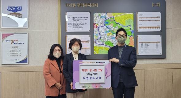 김포시 마산동(동장 진혜경)은 12월 2일 더함밝은교회(목사 임민우)에서 백미(10kg) 50포를 기탁했다고 밝혔다.