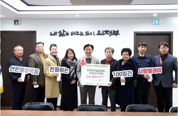 이날 전달식은 시장실에서 의정부시외식업지부 김성군 회장 외 8명의 관계자가 참석한 가운데 진행됐다.