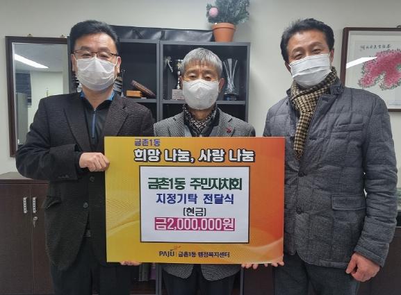 사회단체에서는 한 해를 마무리하며 이웃들에게 도움을 전하고자 기탁을 실시하고 있다. 지난 20일, 파주시 금촌1동 발전협의회로부터 300만원이 기탁됐으며, 26일에는 주민자치회로부터 200만원이 지정 기탁했다.