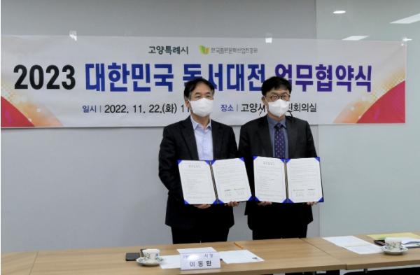 고양특례시는 지난달 22일 독서대전을 함께 주관하는 한국출판문화산업진흥원와 업무 협약을 체결했다. 협약식에서 양 기관은 전 국민의 책 읽기 문화 확산, 지역 독서문화 활성화를 위한 상호 협력과 역할 분담을 약속했다. 세부 프로그램 설계, 협의체 참여, 홍보 지원 등 독서대전의 성공적 개최를 위해 함께 힘을 모으고 있다.