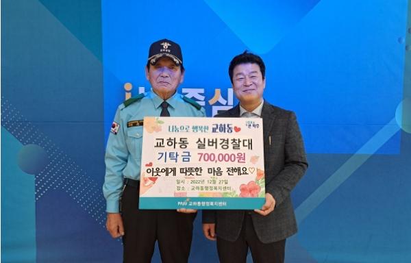 파주시 교하동 실버경찰대가 27일 이웃돕기성금으로 70만원을 전달했다.