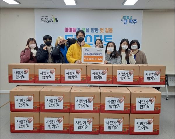 파주시 드림스타트는 3일 운정사랑가득 합기도에서 라면 1,000개를 기부받았다고 밝혔다.