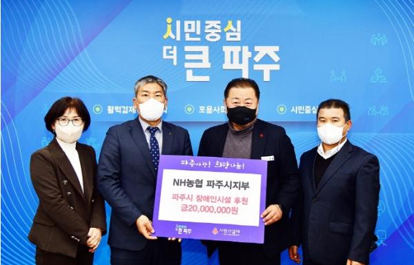 전달식에는 김경일 파주시장을 비롯해 정원철 ㈜신세계사이먼 점장, 권욱민 NH농협 파주시지부장, 황정빈 ㈜씨엔씨코리아 대표와 관계자들이 참석했다.