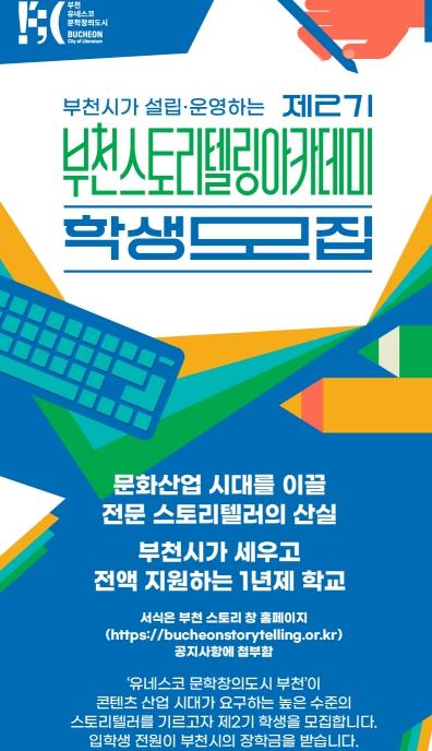 유네스코 문학 창의도시 부천시에서 ‘제2기 부천스토리텔링아카데미’ 수강생을 모집한다.