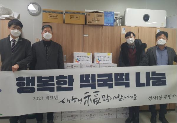 성사1동 주민자치회는 매년 초, 떡국떡을 주문 제작해 손수 포장해 관내 독거노인 등 소외계층에게 전달하는 행사를 꾸준히 해오고 있다.