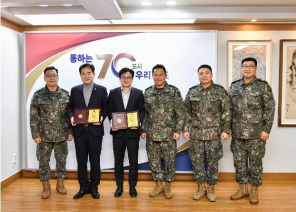 김포시와 김포시의회는 20일 지역 예비군 육성에 이바지한 공로에 따라 경기도 유일의 ‘예비군 육성·지원 우수 지자체’로 선정, 지상작전사령관 감사패를 수여 받았다.
