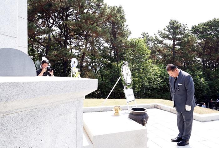 파주시는 6일, 파주시 학령산에 위치한 현충탑에서 제70회 현충일 추념식을 거행했다.