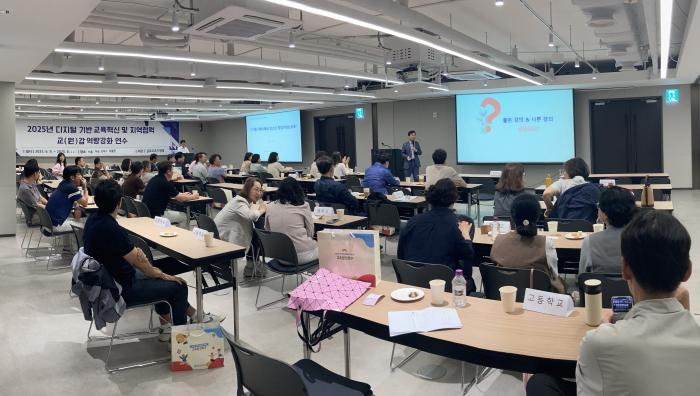 연수에 참석한 한 교감은 “디지털 시대 미래교육에 대한 고민이 많았는데, 이번 강의를 통해 학생들의 자기주도적 문제해결능력을 길러줄 수 있는 방향에 대한 실마리를 찾게 되었다”고 소감을 전했다.