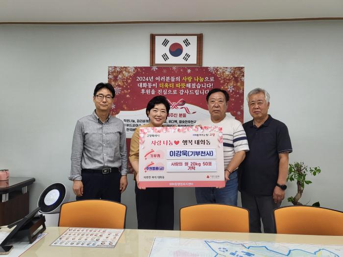 고양시 일산 토박이며 수십년간 농협에 근무해온 이강욱씨가 어려운 이웃에게 전해달라며 쌀(10kg) 100포를 대화동 행정복지센터에 지난 15일 기부했다. 이강욱씨는 매년 대화동 행정복 지센터에 쌀을 기부하고 있다. 대화동행정복지센터는 기부받은 쌀은 형편이 어려운 주민들에게 전달하겠다고 말했다..