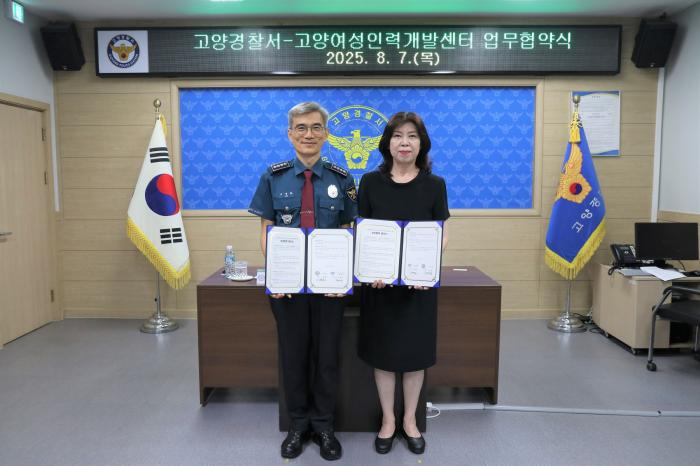고양경찰서와 고양여성인력개발센터는 지난 7일 고양경찰서 꽃우물방에서 관계성 범죄 피해자 중 취약 여성을 대상, 경제활동 활성화를 위한 업무협약(MOU)을 체결했다.