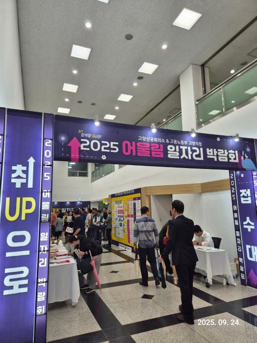 고양상공회의소와 고양고용노동지청이 공동 주최한 ‘2025 어울림 일자리 박람회’가 지난 9월 24일(수) 일산동구청 대회의실에서 성황리에 개최되었다. 이번 박람회는 고용 취약계층의 재도약을 지원하고, 지역 내 일자리 미스매치 해소를 목적으로 마련되었으며 행사 당일 500여 명의 구직자가 방문해 높은 관심을 증명했다.
