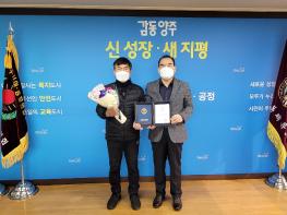 양주1동은 12일 행정복지센터 동장실에서 눈치우기 선행을 펼친 김병관 대원에게 경기도지사 훈격 선행도민상 표창을 전수했다.