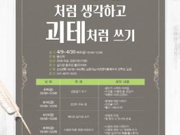 강의 일정은 4월 9일부터 30일까지 매주 금요일마다 열리며, ▲4월 9일신변잡기 쓰기 ▲4원 16일 상상이 주는 힘 ▲4월 23일 메타포 읽기와 쓰기 ▲4월 30일 시점에 따른 관점 바라보기 등과 같은 주제로 구성된다.