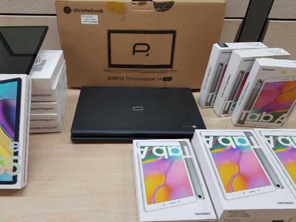 정보취약계층을 우선으로 원격 수업이 어려운 학생들에게 스마트기기 대여를 통해 온라인 수업에 차질이 없도록 지원하고 있다.