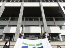 새로운 대표상징물 조례 공포와 더불어, 미래로 나아가는 경기도의 비전을 담은 도기(道旗) 게양식이 16일 도청 신관 국기게양대 앞에서 진행됐다.