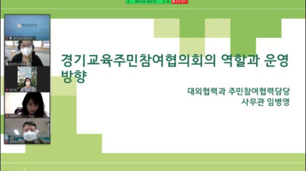 한편 2021년 경기교육주민참여협의회는 공개모집 등을 통해 교육과정, 평생·직업교육, 교육환경개선, 교육복지, 행정제도개선 5개 분과위원회에 모두 100명이 활동하며 임기는 내년 2월까지다.