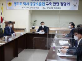 경기도의회 건설교통위원회는 3월 18일 경기도의회 제1정담회실에서 경기도 교통국 택시교통과, 경기도 개인택시조합 및 법인택시조합 관계자들과 함께 ‘경기도 택시 공공호출앱’구축과 관하여 논의하고자 정담회를 개최하였다.