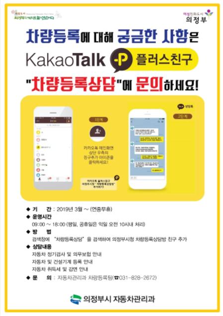 의정부시는 소셜네트워크 카카오톡 채널 기능을 이용해 차량등록 상담방을 개설·운영하고 있다.