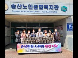 사랑의 반찬 나눔 사업은 민·관 협력 사업이며, 매주 수요일 송산권역에 거주하는 독거노인, 사례관리 가구 등 취약계층 내에서 반찬 조리가 힘들어 균형 있는 영양섭취에 어려움을 겪고 있는 30가구를 선정해 직접 조리한 밑반찬 3종을 전달하는 사업이다.
