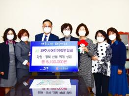 파주시 어린이집연합회(회장 전금희)가 지난 22일 강원·경북 산불피해 성금 510만원을 사회복지공동모금회에 기탁했다고 밝혔다.