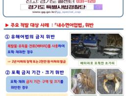 경기도 특별사법경찰단이 내수면 수산자원 보호와 어업 질서 확립을 위해 4월 25일부터 5월 27일까지 도내 주요 강?하천?호수 등에서 불법 어업 행위를 집중 수사한다.