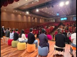 2부 본 행사 말미에는 대표이사와 직원 간 간담회가 진행되었는데, 박윤희 대표이사는 간담회를 통해 재단 발전의 주요한 역사를 지목하며 직원의 노고를 위로하고, 감사의 마음을 표현했다. 특히 코로나19 상황에서 비대면 프로그램 활성화로 빠르게 위기를 극복한 부분에 대한 성과를 평가하고 재단 임직원의 역량에 존중의 마음을 표현했다.