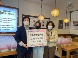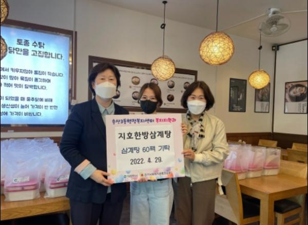 의정부시 송산3동 행정복지센터 복지지원과는 4월 28일 지호한방삼계탕 민락점이 송산1동, 송산2동, 송산3동 저소득 취약계층을 위한 삼계탕 60인분을 기탁했다고 밝혔다.