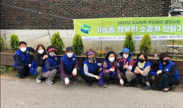 의정부시 가능동 바르게살기운동위원회(위원장 이경자)는 2022년 도시녹화 주민제안사업 공모 사업에 선정되어 4월 30일 가능동 대신연립 등 화단과 화분 30개에 편백나무와 패랭이, 너나부추, 백일홍 등 꽃 600여 본을 식재했다.