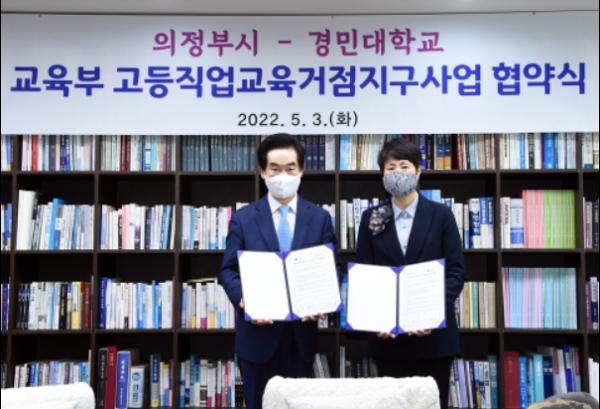 의정부시와 경민대학교는 컨소시엄을 구성해 지난 4월 8일 예비신청서를 제출한 상태이며, 이번 협약을 통해 관·학 거버넌스 구축 운영, 지역특화분야 선정, 교육과정 개편을 통한 인력양성, 지역사회 평생직업교육 고도화, 지역 현안문제 공동 해결 등 고등직업교육거점지구 정착을 위해 긴밀히 협력하기로 했다.