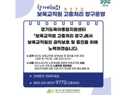 경기도와 경기도육아종합지원센터가 보육교직원의 권익 보호·증진을 위해 올해부터 ‘보육교직원 고충처리 창구’를 운영 중이다.