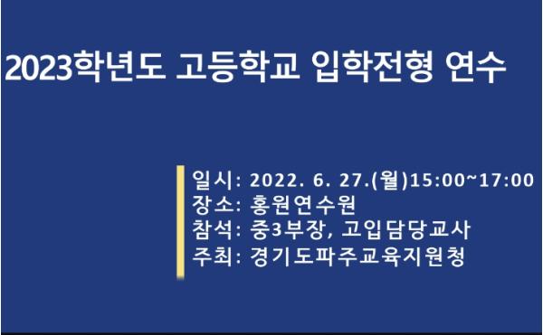 파주교육지원청은 6월 27일 홍원연수원에서 2023학년도 고등학교 입학 전형 연수를 실시했다고 밝혔다.