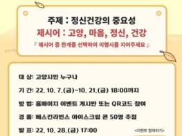 참여는 QR코드 접속 또는 고양시정신건강복지센터 홈페이지를 통해 할 수 있다. 센터는 응모자 중에서 추첨을 통해 50명에게 모바일 아이스크림 기프티콘을 제공할 예정이다.