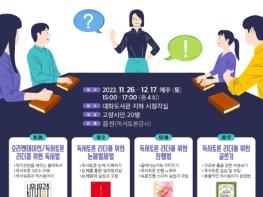 고양특례시 대화도서관이 11월 26일부터 12월 17일까지 독서동아리 리더 양성 프로그램 '독서동아리 리더를 위한 책모임 운영하는 법'을 운영한다.
