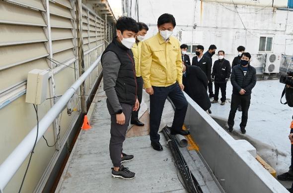 이날 현장점검에는 신희범 부천소방서장과 전기분야 안전관리전문가가 동행해 소방시설 작동여부를 직접 확인하고 화재에 취약한 전기시설 배선상태 등을 둘러보았다. 조용익 시장은 현장에서 바로 관련 부서에 화재예방을 위한 노후전선 정비사업을 서둘러 추진하고 주기적인 화재대비 안전점검을 진행할 것을 지시했다.