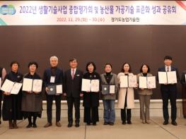 경기도농업기술원이 11월 29일과 30일 이틀간 시·군 농업기술센터 생활기술분야 담당자와 농업인 70명을 대상으로 화성 라비돌 리조트에서 2022년 생활기술분야 종합평가회를 열고 생활기술분야(농산물 가공?식문화 및 농작업) 표준화기술 성과공유 시간을 가졌다.