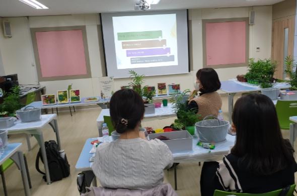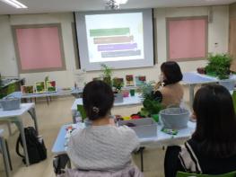 중·고등 전문상담(교)사 대상 연수에서 원예치료 융합콘텐츠로 역사와 원예치료, 영화와 원예치료를 접목하여 구성하고 꽃과 식물을 통하여 자아를 탐색하고 소통하는 실제적인 상담기법을 익히는 시간으로 구성했다. 식물을 통해 자신의 마음 공간을 가꾸면서 자신의 감정을 돌아보고, 직무수행을 하면서 느꼈던 스트레스, 긴장, 불안, 심리적 소진을 회복하는 계기가 됐다.