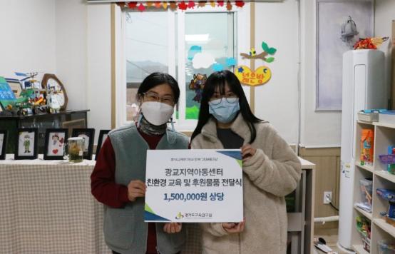 경기도교육연구원(원장 박정일)은 11월 28일 수원 ‘광교지역아동센터’를 방문하여 환경 친화적 생각과 행동을 만드는 환경 생태 감수성을 기를 수 있도록 환경 교육 특강을 실시하고 지원 물품을 제공했다.